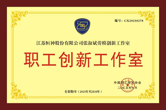 2025年7月,江苏恒神股份有限公司张淑斌劳模创新工作室被命名为“中国职工技术协会职工创新工作室”。